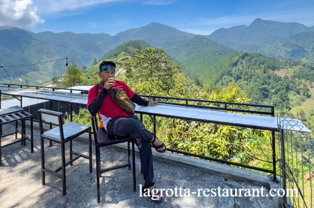 Keunikan lain dari kafe ini adalah desainnya yang terbuka. Sebagian besar area duduk menggunakan konsep outdoor, sehingga pengunjung dapat menikmati langsung udara pegunungan tanpa sekat. Saat sore menjelang malam, pemandangan matahari terbenam menjadi momen paling dinanti. Warna langit jingga keemasan berpadu dengan siluet pegunungan menciptakan suasana romantis dan fotogenik untuk diabadikan di media sosial. Beberapa pengunjung bahkan memilih menghabiskan sore hingga malam hari untuk menikmati langit senja yang berubah menjadi warna ungu dan biru gelap dengan gemerlap bintang.